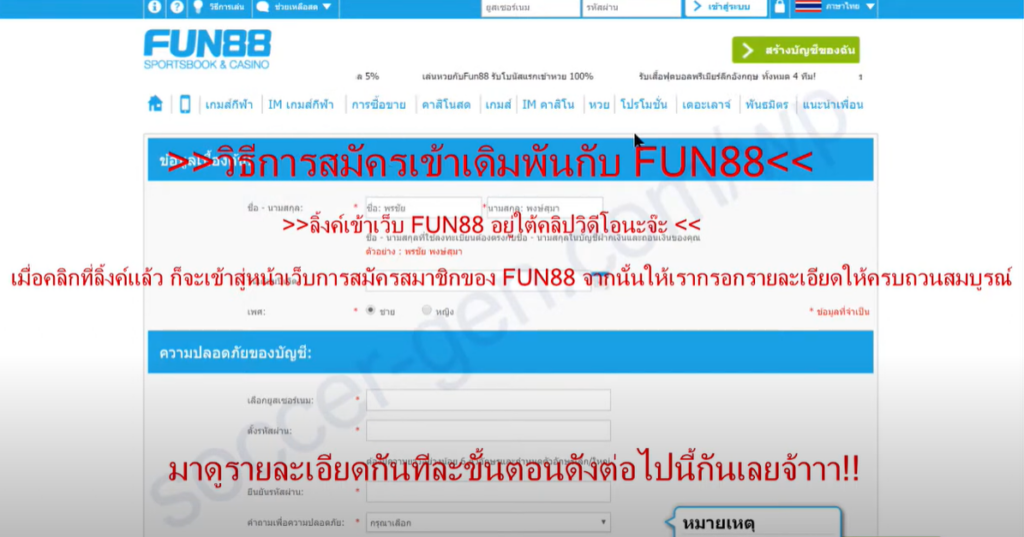 โปรดทราบว่าคุณต้องใส่มันไว้ในกระเป๋าเมื่อลงทะเบียนกับ Fun88 - fun88loginthai.com